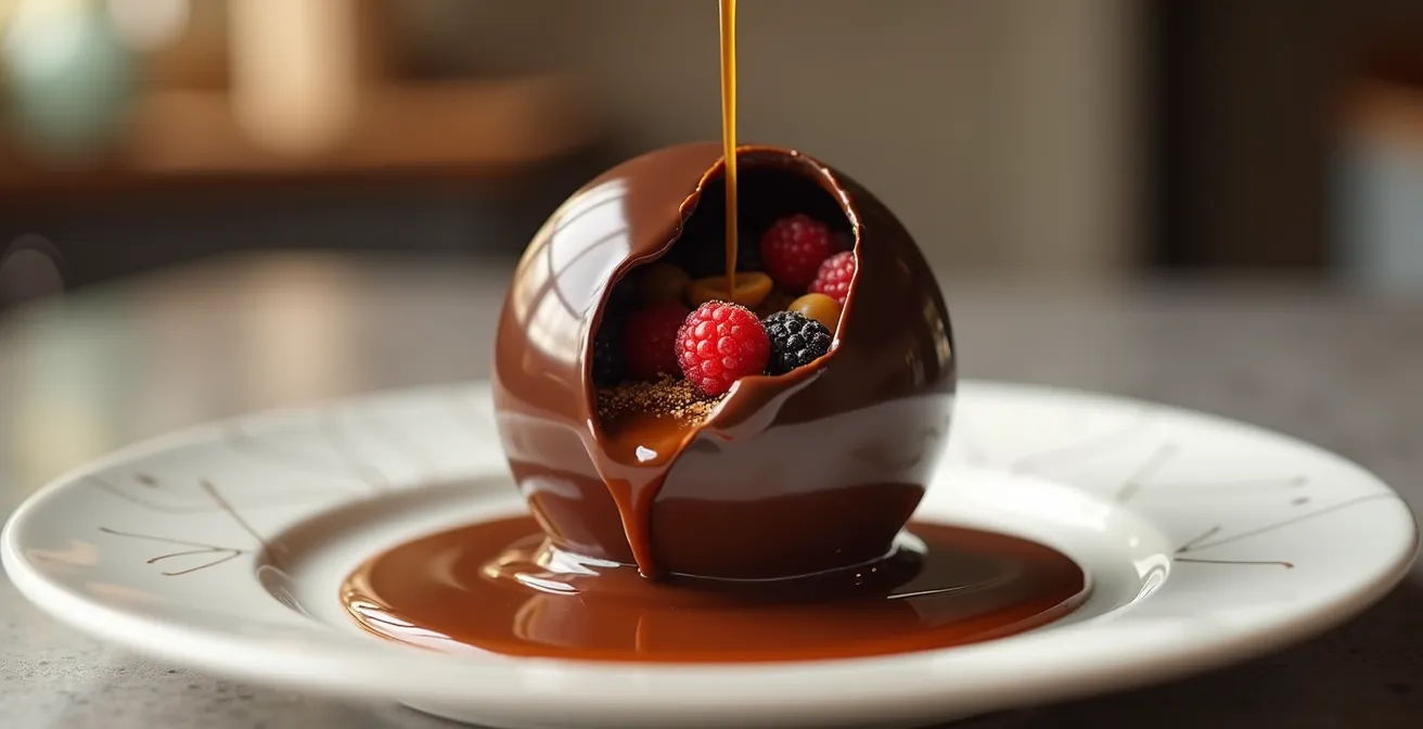 What if the secret wasn’t in the recipe, but in the mindset? The key to mastering the melting chocolate sphere is to stop thinking like a cook and start thinking like a theatrical dessert engineer. This guide will reframe the entire process, focusing on the principles of structural integrity, thermal dynamics, and sensory choreography. We will deconstruct the spectacle into its core engineering components, giving you control over every variable for a repeatable, jaw-dropping result.