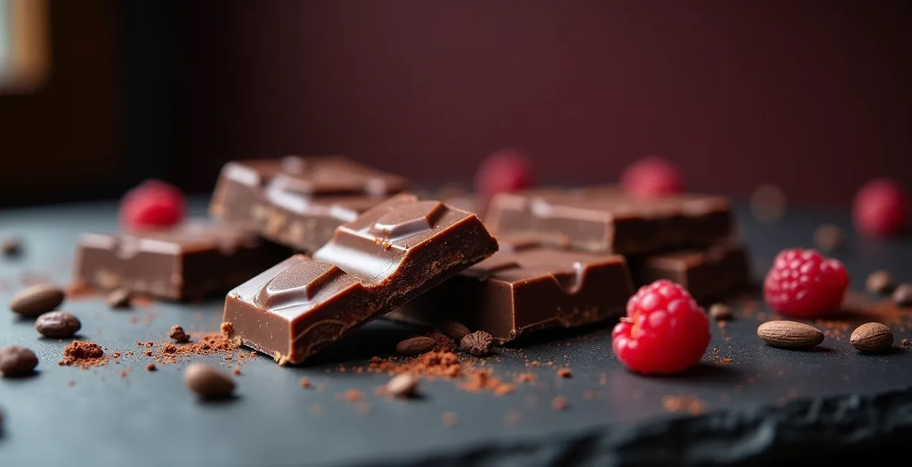 You unwrap a bar of 70% dark chocolate, promised with notes of raspberry and cherry. You take a bite, let it melt, and… nothing. All you perceive is a wall of uniform bitterness. It’s a frustrating experience common to many aspiring connoisseurs. You might think your palate is simply not “sophisticated” enough. You’ve likely heard the standard advice: use a flavor wheel, cleanse your palate, or just “concentrate harder.” While well-intentioned, this advice misses the fundamental point.